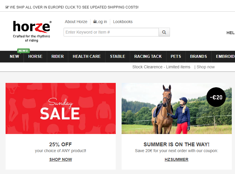 Du finder et stort udvalg af ride- og hesteudstyr i vores Horze-butikker i hele Europa. Derudover samarbejder vi med hundredevis af udstyrsbutikker over hele verden, hvor du kan få fat i vores produkter.